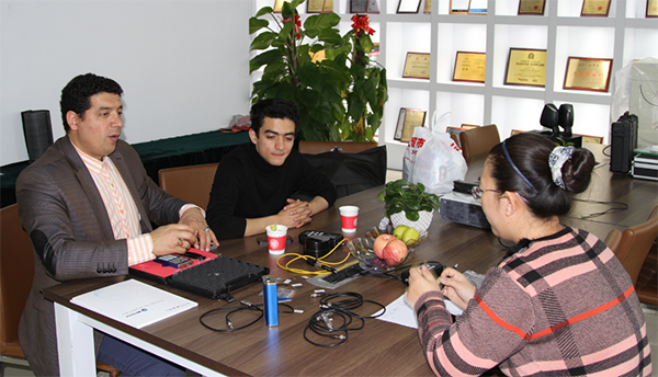 In meeting room, they made a brief communication in the conference, the clients stated——they wanted to find NDT equipment which can test irregular workpiece, our manager introduced digital ultrasonic detector. The clients asked a few detailed information about MITECH hardness tester and thickness gauge, our manager made specific explanations.