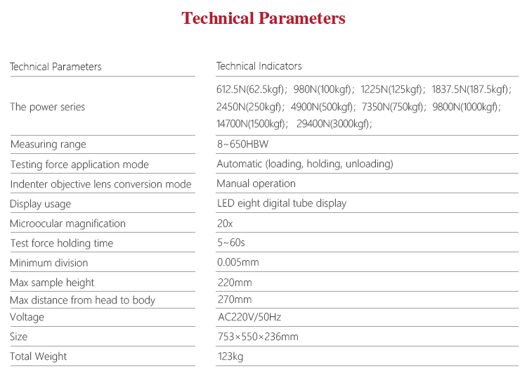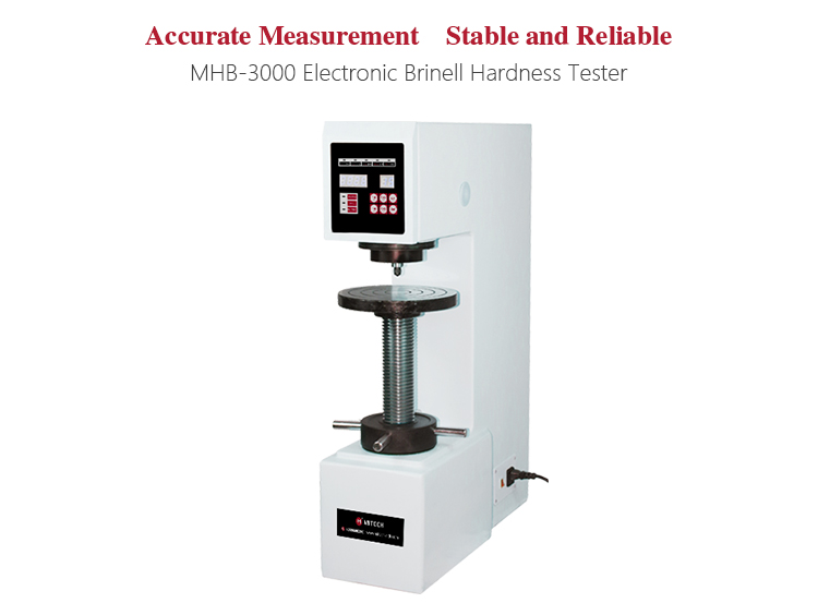 Mitech MHB-3000 Electronic Brinell Hardness Tester, based on the mechanical principle of hard alloy indenter pressing into the sample surface to produce indentation, realizing the material hardness measurement by measuring the diameter of the indentation , it is novel and high reliable with accurately measurement. LED eight digital tubes and luminescent secondary tube display, simple operation, it can visually display the test results to meet the hardness testing requirement for the quality control and qualified assessment of the workpiece sample. It is widely used in metal processing and manufacturing, various metal material’s failure analysis and other fields like colleges and research institutions. It is the new type Brinell hardness testing instrument for testing the hardness of the materials like cast iron, steel, soft alloy and so on.