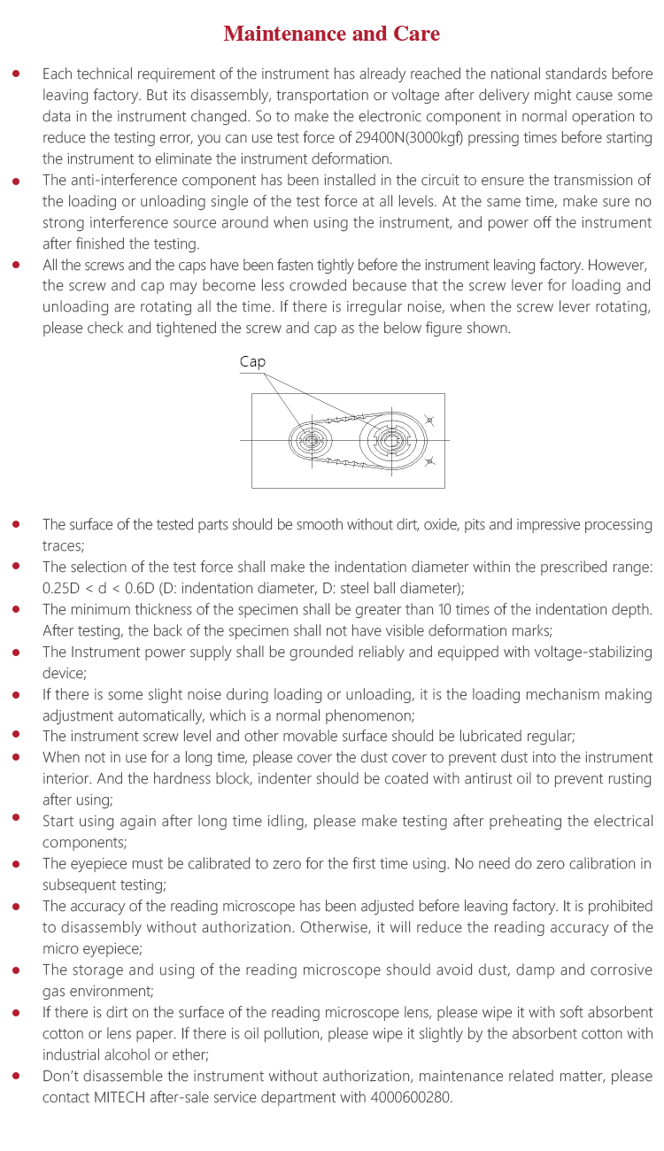 the hardness block, indenter should be coated with antirust oil to prevent rusting after using.
