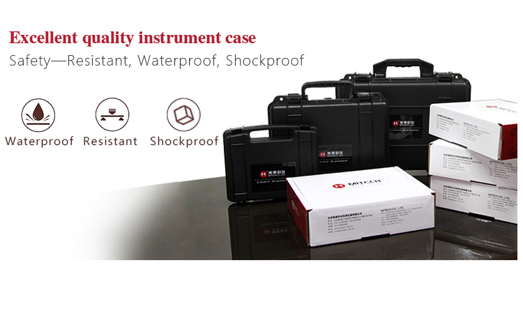 | Carry case for coating thickness gauge, length: 25cm, height:6cm,width: 21cm,weight: 0.628kg. It is made of ABS engineering plastic sealed waterproof, anti-throw shock, heat resistance, low temperature resistance and other excellent properties, which can effectively defense in the severe environment pollution, dust and all kinds of corrosion, measures for air, train carrying standard (can be put under the seat in and the rack), small and convenient can be placed in the backpack, safe, reliable and stable. | |