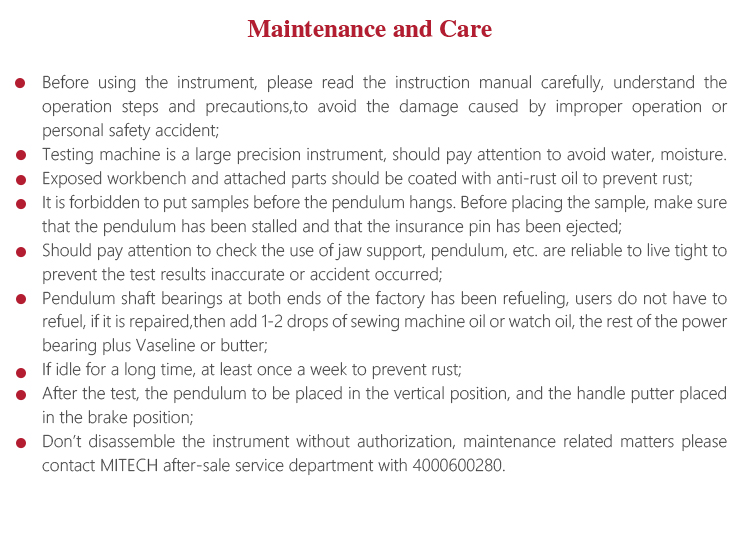l Should pay attention to check the use of jaw support, pendulum, etc. are reliable to live tight to prevent the test results