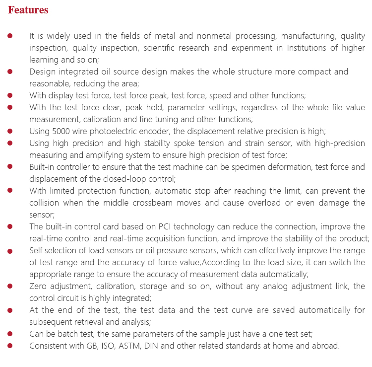 l Built-in controller to ensure that the test machine can be specimen deformation, test force and displacement of the closed-loop control;