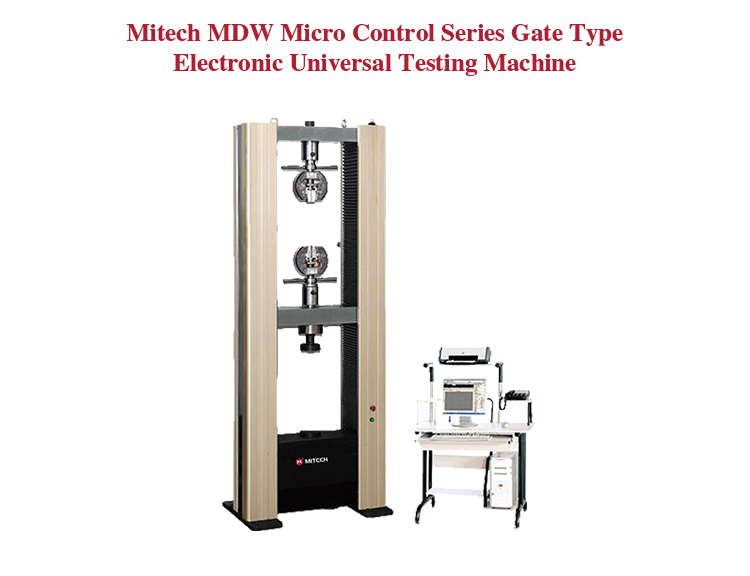 Product OverviewMitech MDW micro control series gate type electronic universal testing machine, through the computer control motor drive screw, equipped with the corresponding auxiliary for metal, non-metallic and composite materials for pull, pressure, bending and other mechanical properties test (Tensile test carried out between the upper beam of the main body and the moving beam. Compression and bending tests carried out between the table of the host and the moving beam). It’s adopts the built-in controller, AC servo motor, by computer-aided means to achieve powerful function with stable performance, strong structure, high reliability, simple operation, high degree of automation. It’s widely used in metal and non-metallic processing industry, quality inspection departments, scientific research and other areas of higher education institutions and it’s a necessary professional precision testing equipment for improve production efficiency and save production costs.