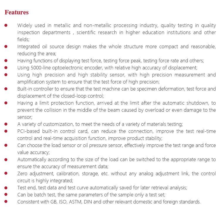 l Using high precision and high stability sensor, with high precision measurement and amplification system to ensure that the test force of high precision;