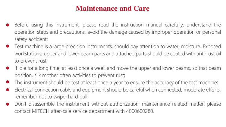 l Don’t disassemble the instrument without authorization, maintenance related matter, please contact MITECH after-sale