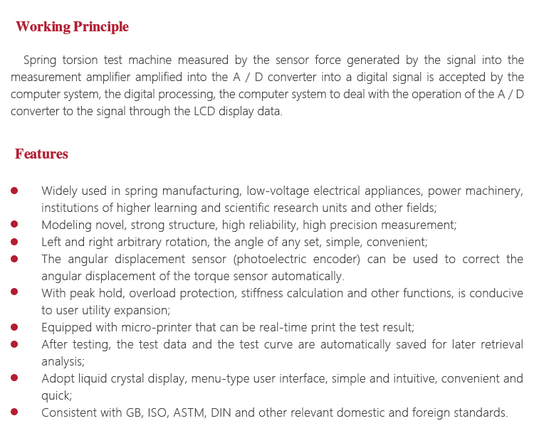 Instrument Featuresl Widely used in spring manufacturing, low-voltage electrical appliances, power machinery, institutions of higher learning and