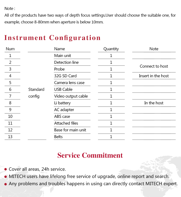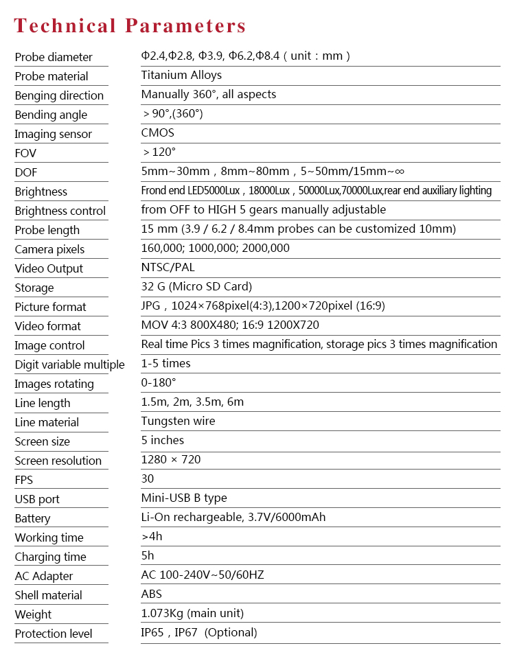 l After use, do not soak the product, the soft cloth can be used to clean the probe and mirror host, and then into the ABS case, so as not to cause corrosion or damage to the instrument;