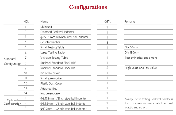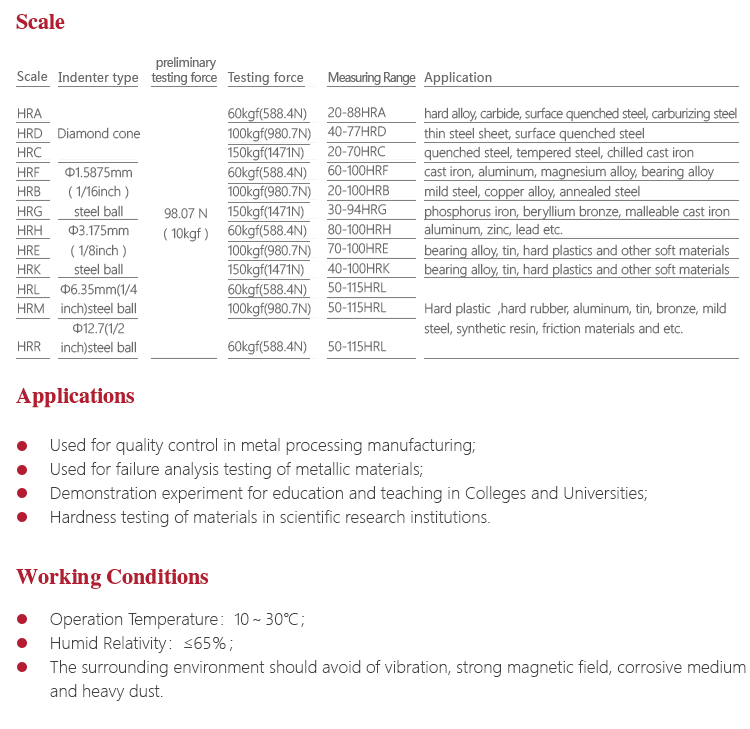 | Rockwell scale | HRA、HRB、HRC、HRD、HRE、HRF、HRG、HRH、HRK |