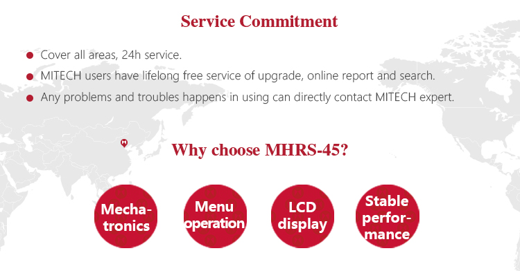Product OverviewMitech MHRS-45A Digital Display Rockwell Hardness Tester, based on the mechanical principle of conical diamond or hard alloy indenter pressing into the sample surface to produce indentation, realizing the material hardness measurement by measuring the depth of the indentation. According to statistics, Rockwell hardness testing is the most widely used hardness testing method in metal processing industry, which utilization ratio is more than 70%. It is stable performance, intuitive and convenient LCD display, which makes it easy to operate menu-style design, mechanical and electrical integration of a new generation of high-tech products. It is widely used in metal processing and manufacturing, various metal material’s failure analysis and other fields like colleges and research institutions, and it is the sophisticated detection equipment to test the surface hardness of metal and other materials.