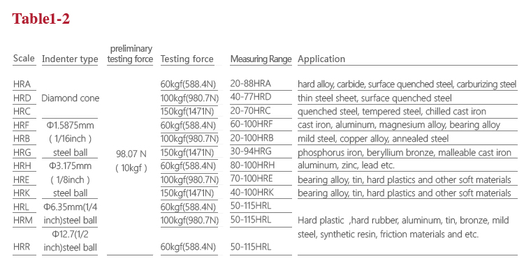 | Rockwell scale | HRA、HRB、HRC、HRD、HRE、HRF、HRG、HRH、HRK、HRL、HRM、HRP、HRR、HRS、HRV |