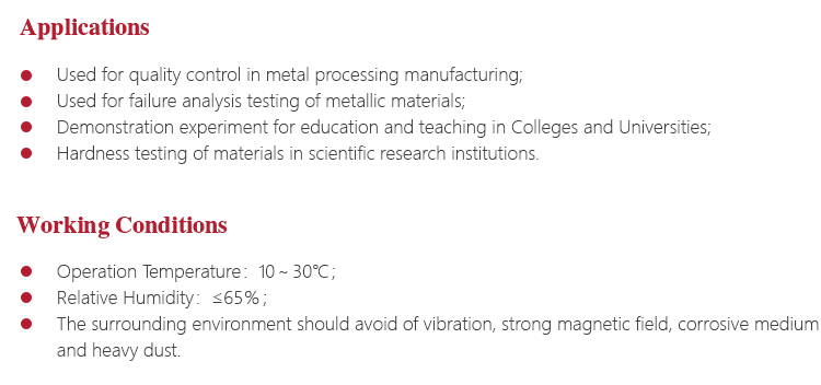Instrument Featuresl Widely used for high-precision hardness testing for parts with a variety of metal and non-metallic materials;