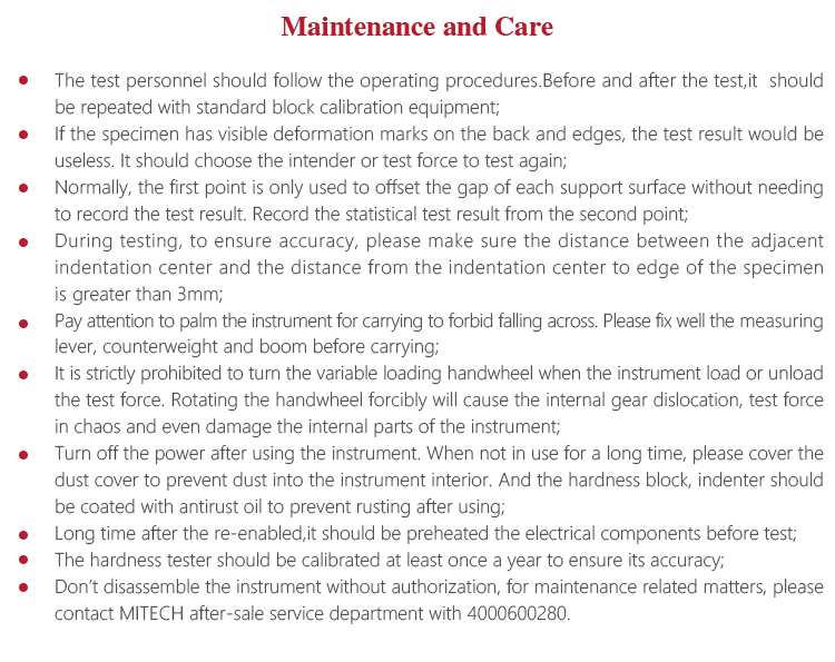 dust into the instrument interior. And the hardness block, indenter should be coated with antirust oil to prevent rusting