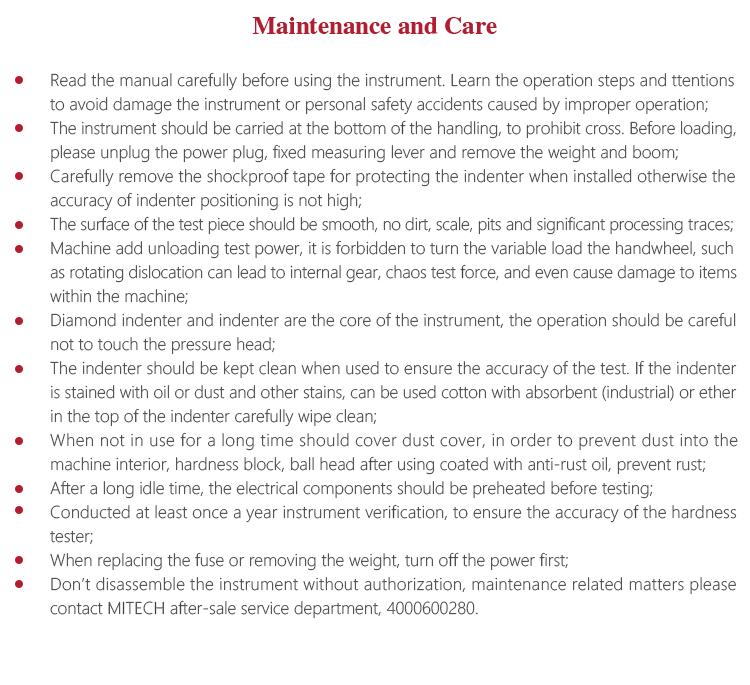 Conducted at least once a year instrument verification, to ensure the accuracy of the hardness tester