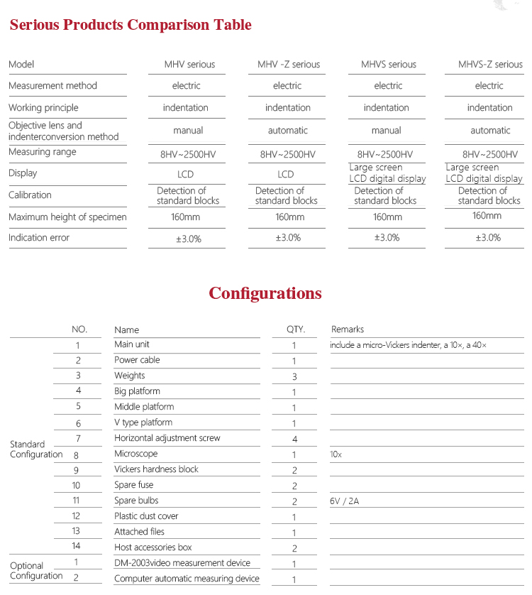 | Measurement range | 8HV0.3~2500HV10 |