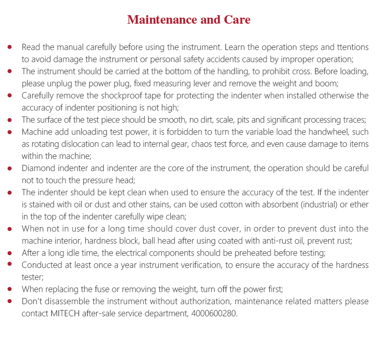 l The indenter should be kept clean when used to ensure the accuracy of the test. If the indenter is stained with oil or dust