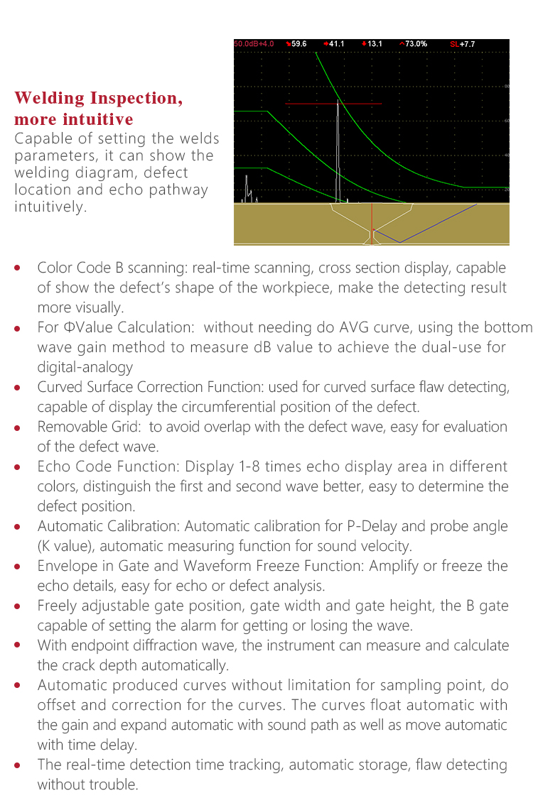 | Defect characterization | calculate the equivalent size of the flaw easily and quickly to facilitate the judgment of artificia |