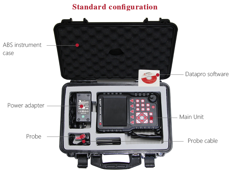 | Probe Type | straight beam probe, angle beam probe, dual element probe, through-transmit probe |