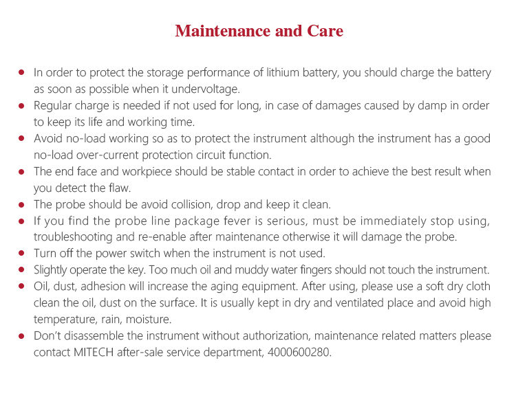 l Don’t disassemble the instrument without authorization, maintenance related matters please contact MITECH after-sale service department, 4000600280