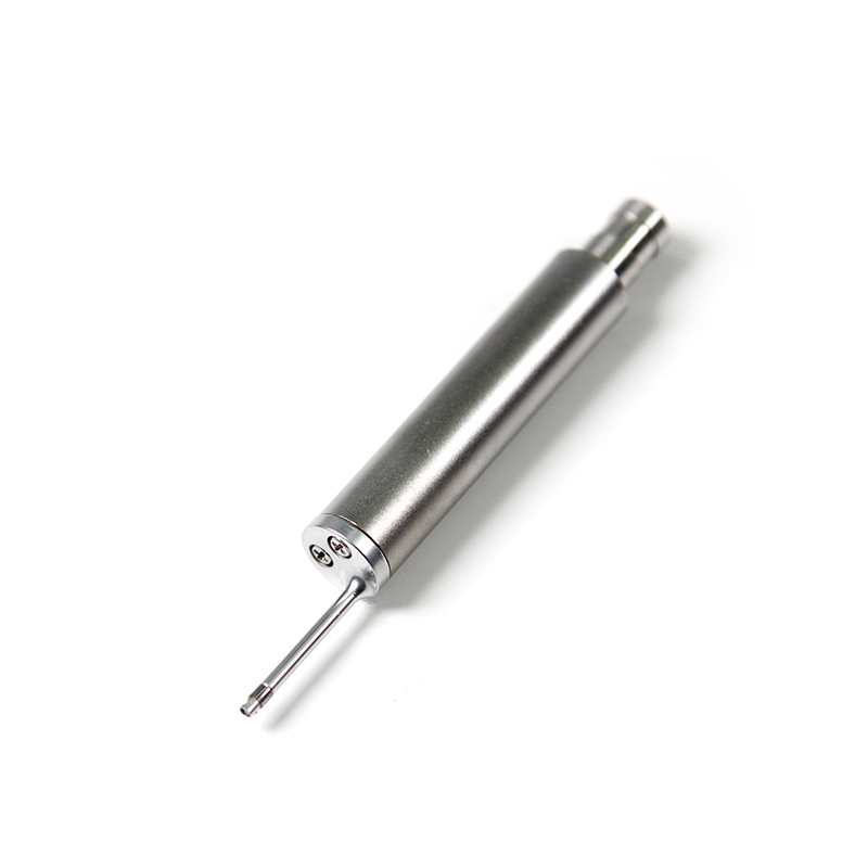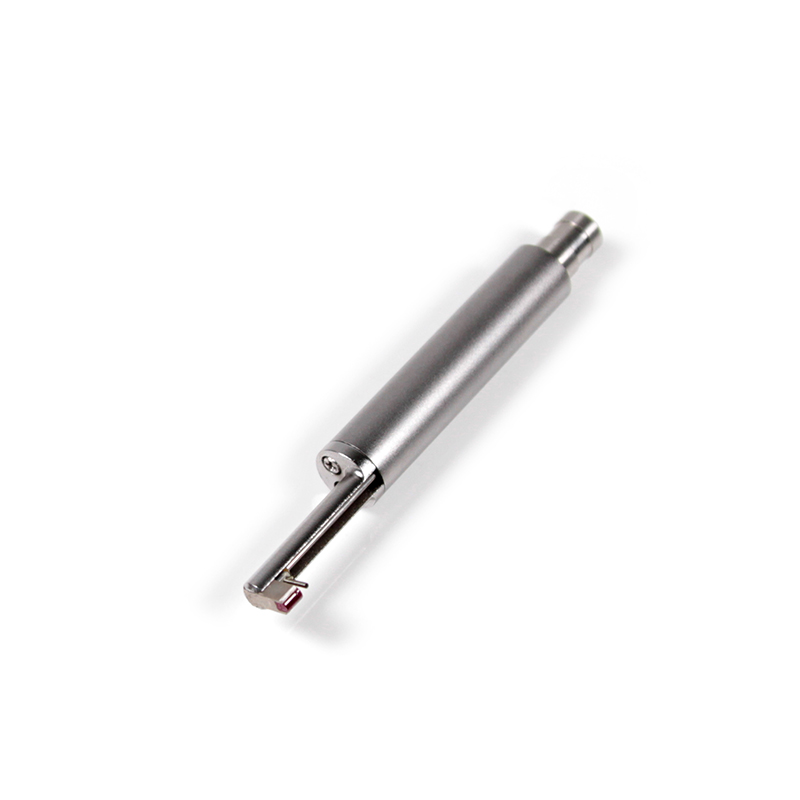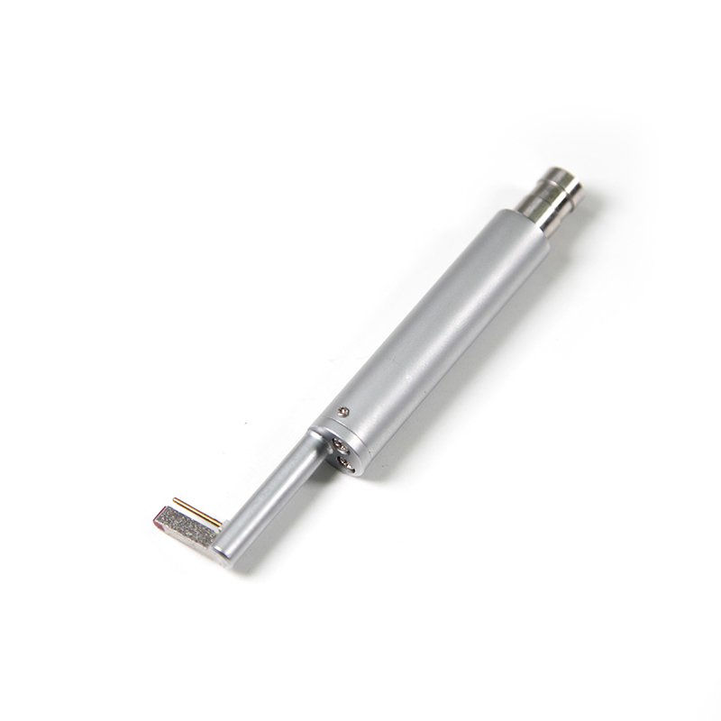 The tiny-hole sensor of Mitech portable surface roughness tester MR200, with totally length of 77mm, main body length of 46mm, guide-head bearer length of 19.6mm, main body diameter of Φ10mm, core-insert sleeve diameter of Φ7mm, guide-head height of 2mm,  It is the optional configuration of the surface roughness tester, mainly used for measuring the inner surface roughness of the circular hole with a diameter larger than 2.5mm. And its other usage is the same as the standard sensor.