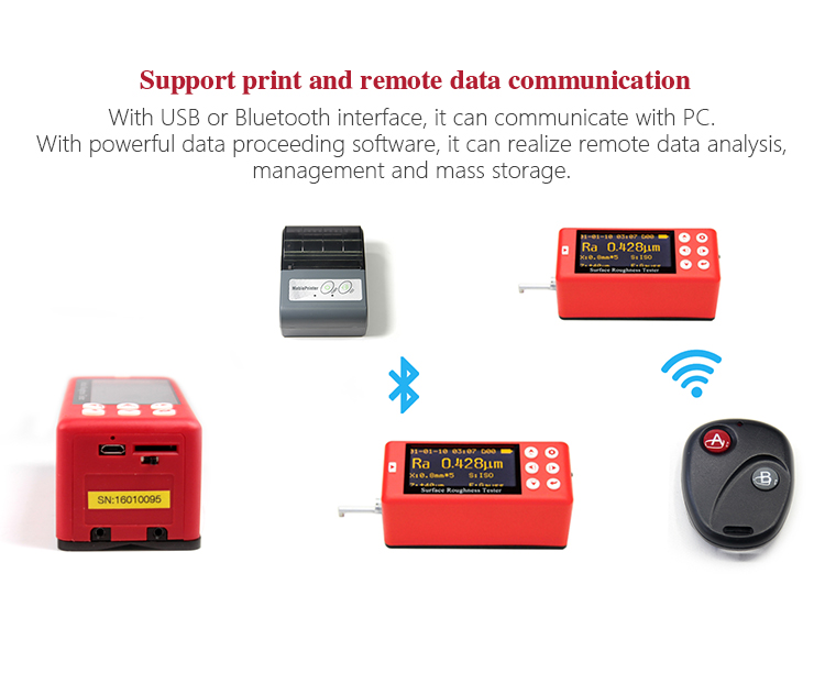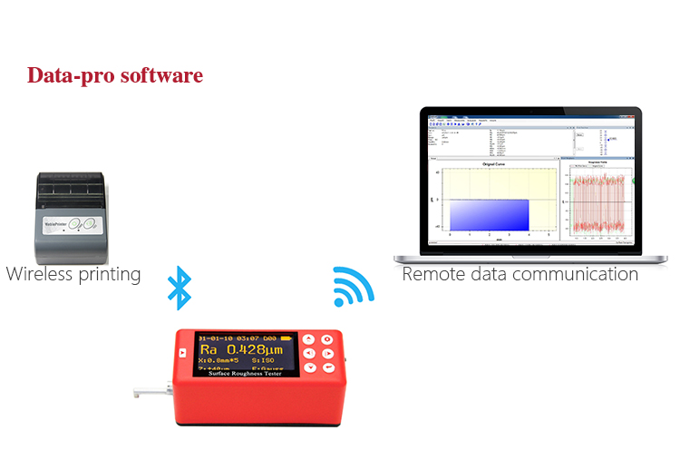 The Mitech portable surface roughness tester can option the PC data proceeding software, which has the functions of data management, controlling measurement, graphic display, parameter setting, printing, storage, file management and so on. It is suitable for monitoring the manufacturing process in various industries related to the metal. With the analysis results provided by the software, it can make enterprise quality control more scientific basis and higher traceability. Improving the quality of enterprise information management level is the effectively guarantee for enterprise controlling the product qualification rate and improving the product quality. The software can also be used as effective tools in scientific research units related with metal materials, manufacturing plants, universities and other departments engaged in theoretical teaching, experimental analysis and basic scientific research.