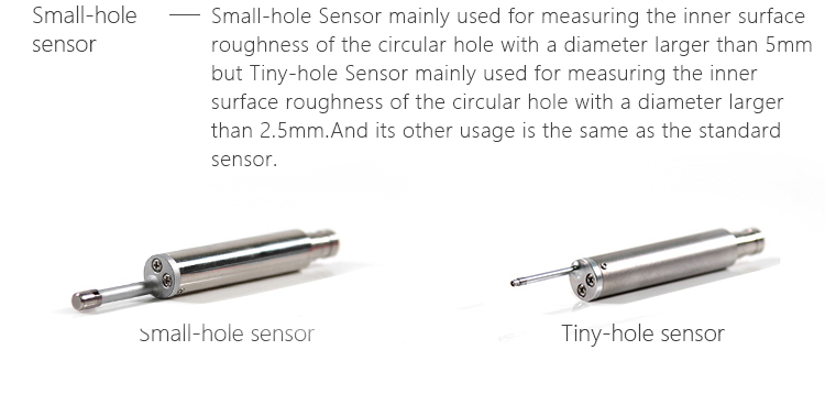 The small-hole sensor of Mitech portable surface roughness tester MR200, with totally length of 77mm, main body length of 46mm, guide-head bearer length of 19.6mm, main body diameter of Φ10mm, core-insert sleeve diameter of Φ7mm, guide-head height of 5mm, It is the optional configuration of the surface roughness tester, mainly used for measuring the inner surface roughness of the circular hole with a diameter larger than 5mm. And its other usage is the same as the standard sensor.