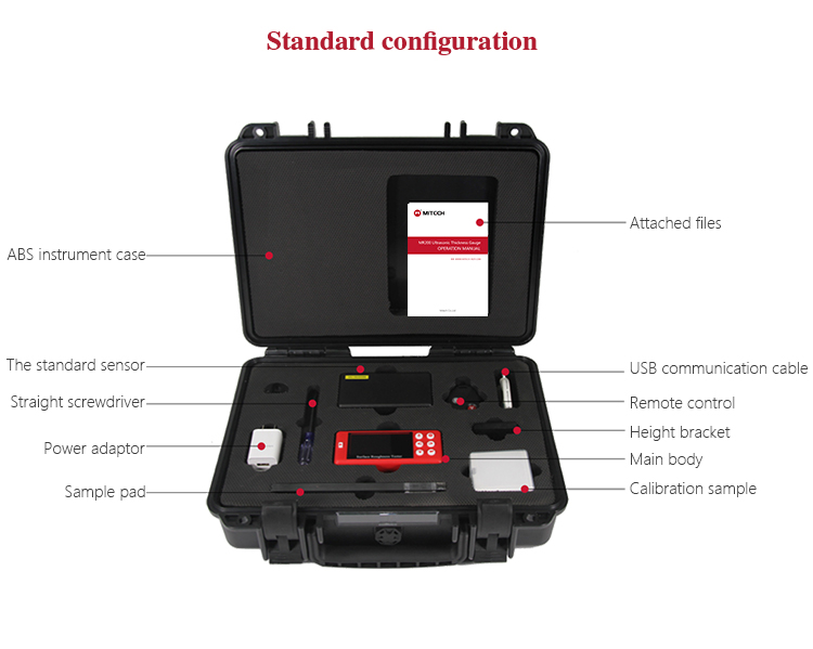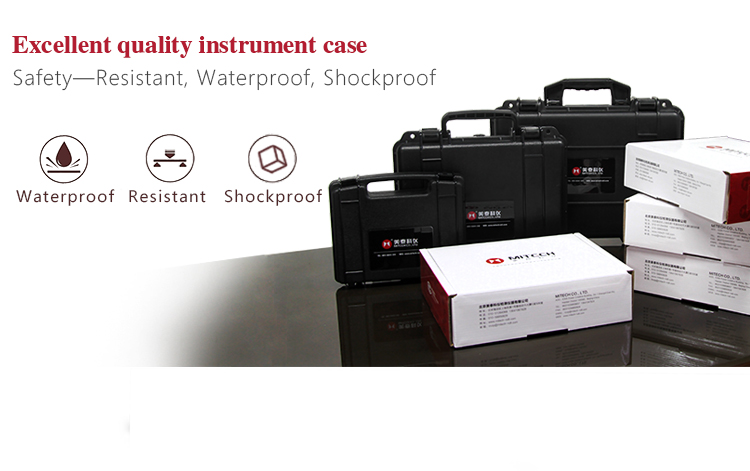 The instrument case of Mitech portable surface roughness tester with length of 35cm, width of 70cm, height of 11cm and weight of 1.6kg, designed with ABS engineering plastic, It has excellent performance like waterproof, shockproof, excellent heat resistance and low temperature resistance. It can effectively prevent oil, dust and corrosion in harsh environment. Its size in line with the standards for aviation and train carrying (capable of putting under the seat and on the luggage rack), highly compressed format design, beautiful and regular, it is safe, reliable and stable.