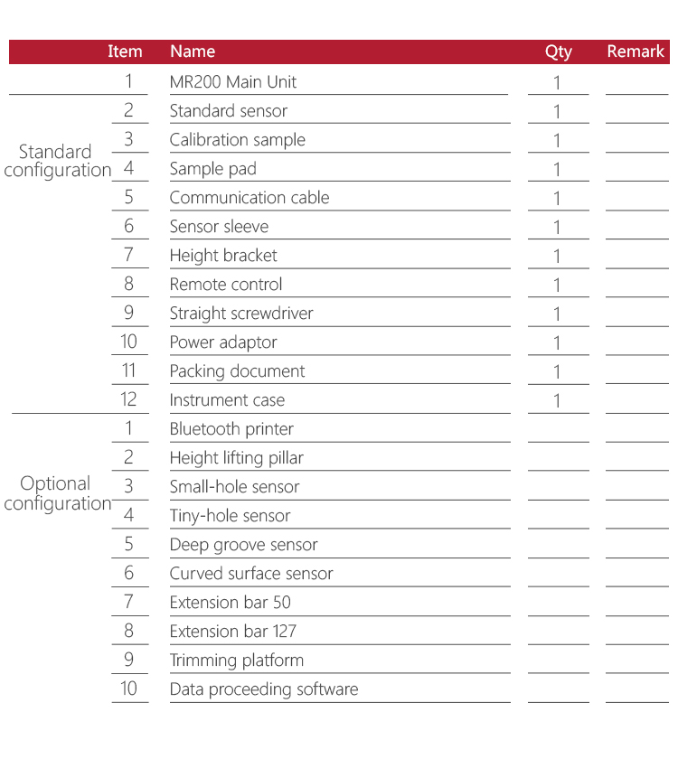 Full accessories, options for curve surface probe, deep groove probe, small hole probe, tiny hole probe, tooth surface probe, small pillar, height adjust platform, extension bar, lateral transfer rod etc.