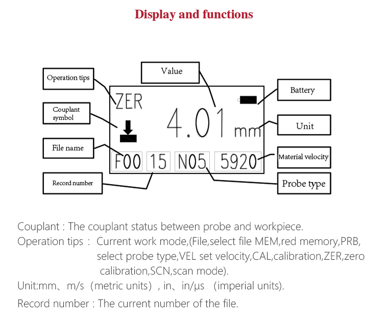 When the thickness gauge appears some other abnormal phenomena, please do not dismantle or adjust any fixedly assembled parts. Fill in and present the warranty card to us. The warranty service can be carried on. Keep it away from vibration, strong magnetic field, corrosive medium, dumpiness and dust. Storage in ordinary temperature. With Original packing, transport is allowed on the third grade highway.