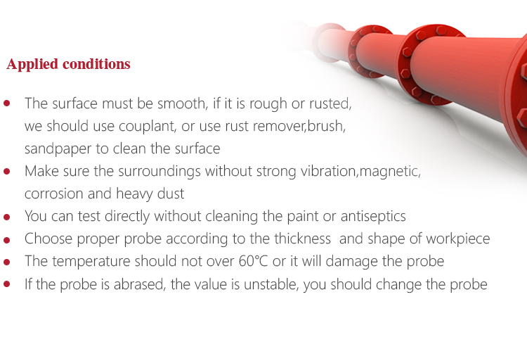 The couplant coated on the probe and the measured workpiece surface as the medium to isolate the air between them, selecting the proper viscosity couplant is the critical thing for the precisely measurement. Mitech series ultrasonic thickness gauge standard 75mm ultrasonic special couplant in the configuration for isolating the air between the ultrasonic probe and the workpiece surface, which can make probe produced ultrasonic wave into the workpiece effectively to ensure the accurate measurement of thickness. The couplant with squeeze bottle packing, it is clean and environmental. It is recommended to select the low viscosity couplant for measuring the smooth material and select the high viscosity couplant (like glycerine cream, butter and so on) for measuring the rough material.