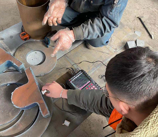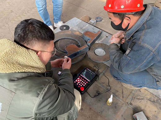 美泰工程師又對儀器界面,功能操作進行了演示教學。現場工件種類較多,美泰工程師選擇了 2.5MHz φ20直探頭和2.5MHz 13×13 K2斜探頭,以適應不同工件的檢測需求。美泰MUT550B超聲波探傷儀智能操作系統易于新手學習,客戶現場技術人員迅速掌握了基本操作并在美泰工程師指導下著手探傷檢測。培訓結束后,客戶對美泰的產品和美泰工程師的專業服務表示高度贊譽。