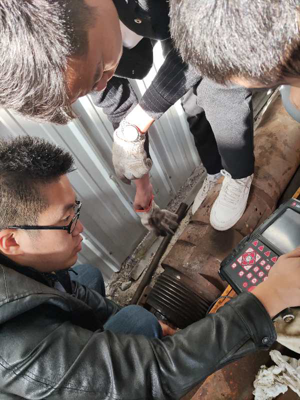 該單位隸屬于國企黃金礦業。反井鉆機施工中主要負責地下井筒破碎巖石,清理開采運礦通道,對于后期的采礦、運輸起著極為重要的作用。由于反井鉆機是通過電機帶動液壓馬達驅動鉆桿和鉆頭高速旋轉,使導孔鉆頭受力產生強大的沖擊荷載,達到鉆深的目的,所以對于其使用頻率最高、磨損最嚴重的石油鉆桿的內部無損探傷檢測極為重要,一旦施工斷裂,將會造成巨大財產損失。