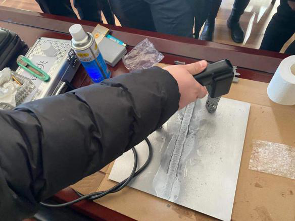 美泰工程師又指導現場人員使用磁粉探傷儀結合黑油磁懸液對焊縫表面進行探傷檢測,檢測效果明顯,MMP-200便攜式磁粉探傷儀,可擺脫 220V電源獨立供電,特別適用于現場檢測,客戶現場技術人員對該設備的便攜性十分滿意,并對美泰儀器及專業服務表示高度贊譽。