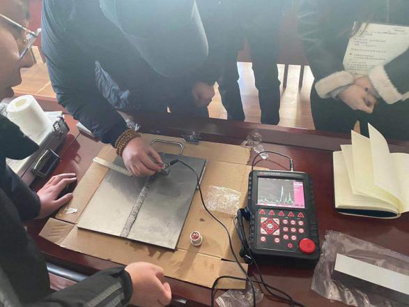 美泰工程師首先為現場技術人員詳細講解了設備的功能作用、工作原理、操作使用、相關配置說明、維保注意事項等,普及理論知識和檢測常識后,現場指導使用人員的實際上手操作。美泰超聲波探傷儀MUT550B,人性化設計輕松操作,設有細致入微的步驟操作提示功能,僅需要做出是與否的簡單判斷,即可根據每一步提示,完成復雜的調校,綜合閘門自動報警等功能,真正實現“傻瓜式”無漏檢探傷,是初學者的明智之選。