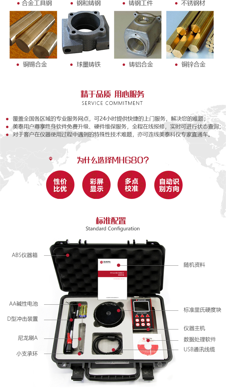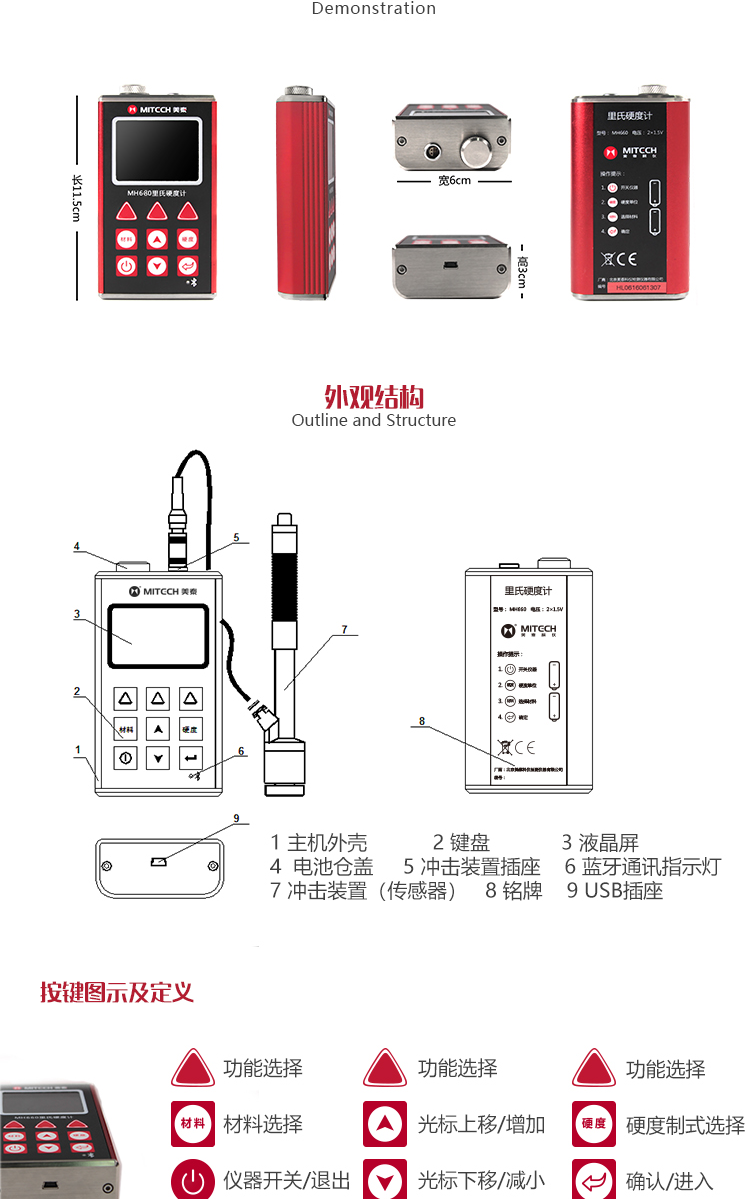 | 測量材料 | ?鋼和鑄鋼、合金工具鋼、不銹鋼、灰鑄鐵、球墨鑄鐵、鑄鋁合金、銅鋅合金(黃銅)、銅錫合金(青銅)、純銅、鍛鋼; |