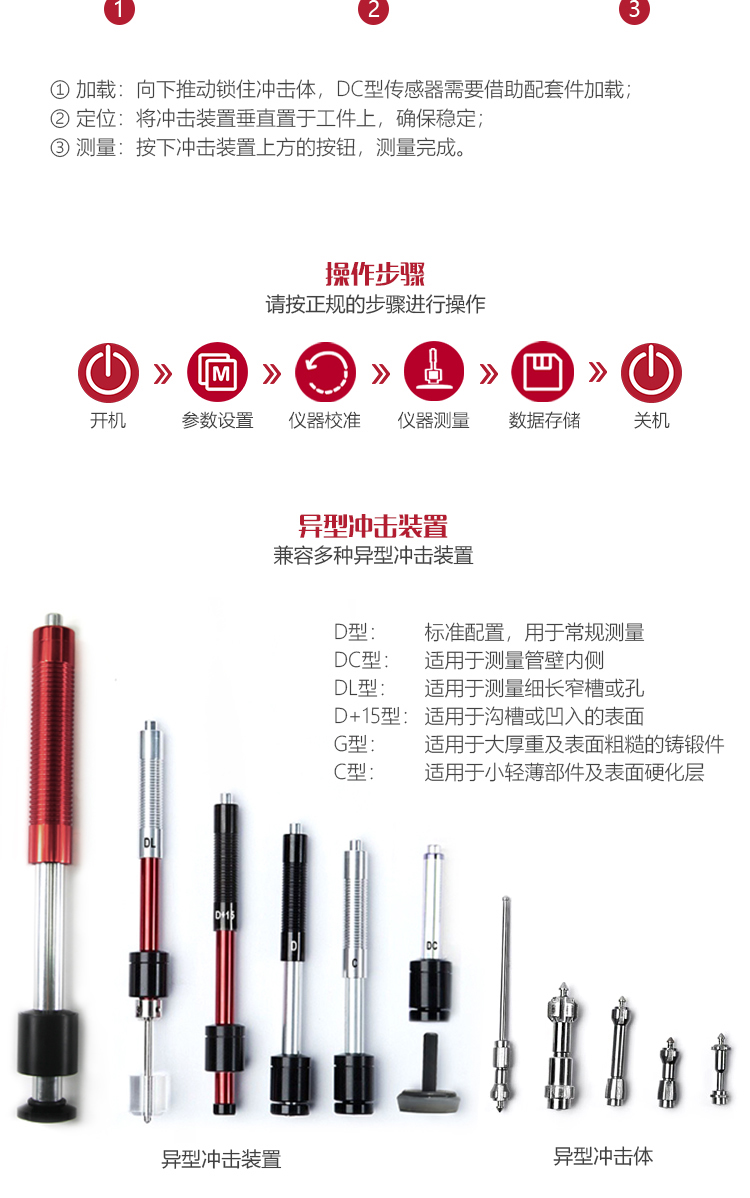 | 硬度制式 | ?里氏(HL)、布氏(HB)、洛氏B(HRB)、洛氏C(HRC)、洛氏A(HRA)、維氏(HV)、肖氏(HS); |