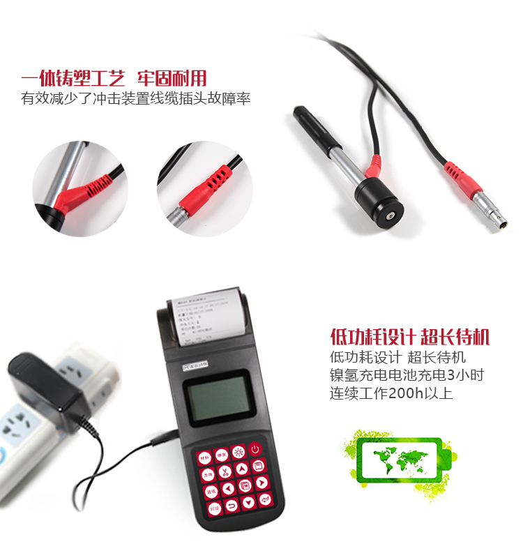 可存儲最大500組(沖擊次數32~1)硬度測量數據,每組數據包括單次測量值、平均值、測量日期、沖擊方向、次數、材料、硬度制等信息。