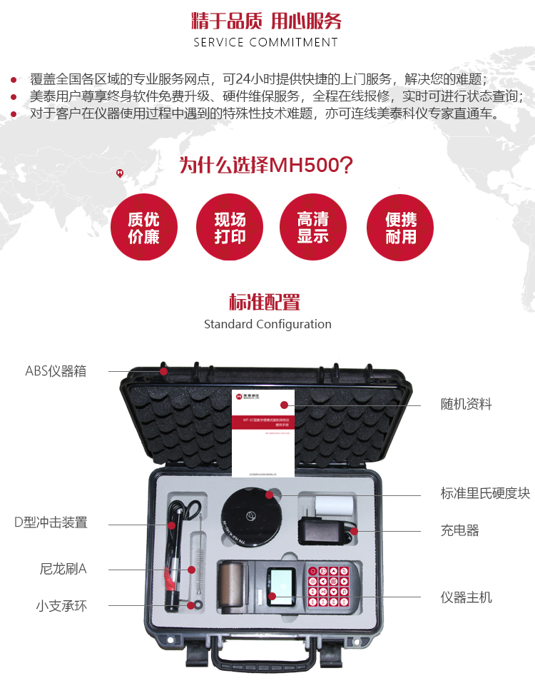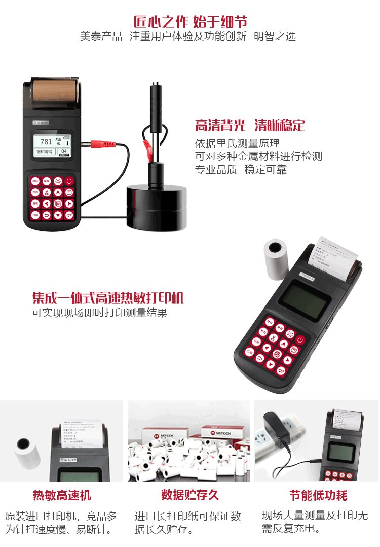 產品概述MH500便攜式里氏硬度計基于里氏硬度測量原理,可方便快捷地現場檢測多種金屬材料的硬度,支持里氏、布氏、洛氏等多種硬度制氏間的自由轉換。它采用128×64圖形點陣液晶屏,信息豐富直觀,性能穩定,集成一體式高速熱敏打印機,可實現現場即時打印測量結果,被廣泛地應用于金屬加工制造業、特種設備、永久性組件的失效分析、商檢等領域。特別適宜對大型零件及不可拆卸部件的現場硬度測試。是提高生產效率與合格率、節約生產成本的明智之選。