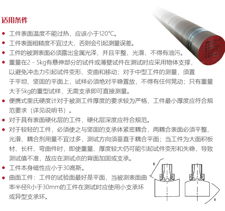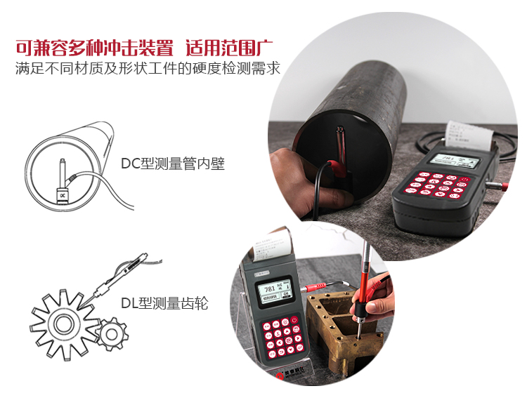 工作原理里氏硬度:規定質量的沖擊體在彈力作用下,以一定速度沖擊試樣表面并回彈,用沖擊體在距試樣表面1mm處的回彈速度與沖擊速度的比值計算硬度