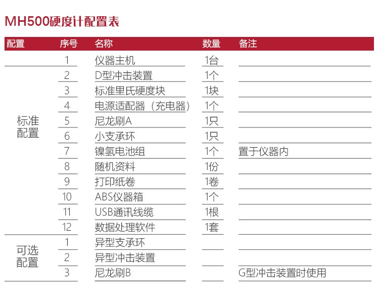 | 存儲 | 可存儲最大500組(沖擊次數32~1)硬度測量數據 |