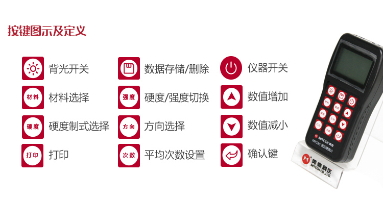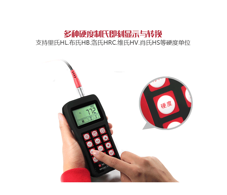 | 單位制式 | 里氏(HL)、布氏(HB)、洛氏B(HRB)、洛氏C(HRC)、洛氏A(HRA)、維氏(HV)、肖氏(HS) |