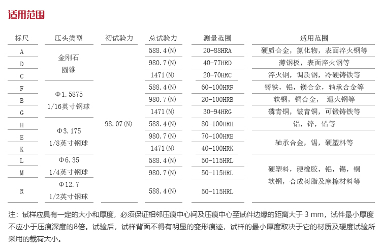 | 總試驗力 | 588.4N(60kgf),980.7N(100kgf),1471N(150kgf),允差±1.0% |
