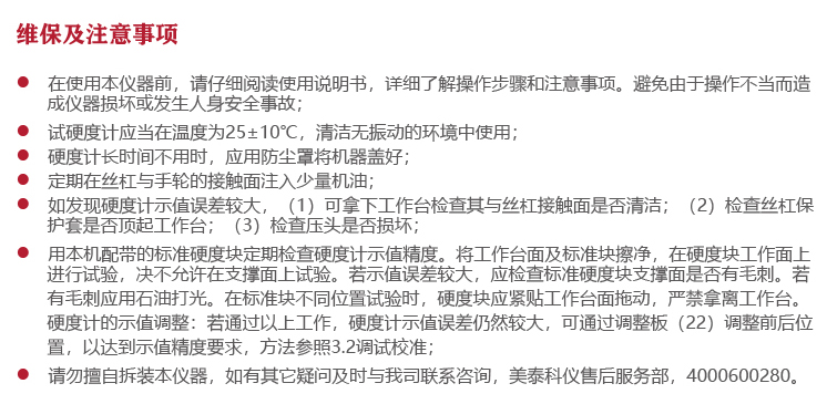 ?如發現硬度計示值誤差較大,(1)可拿下工作臺檢查其與絲杠接觸面是否清潔;(2)檢查絲杠保護套是否頂起工作臺;(3)檢查壓頭是否損壞;