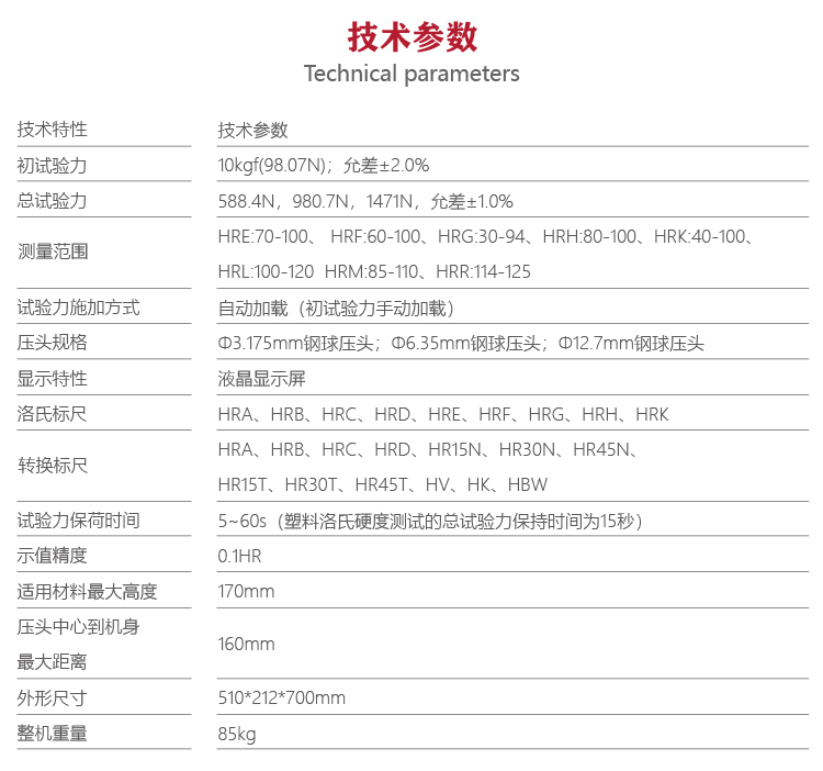 | 初試驗力 | 10kgf(98.07N);允差±2.0% |