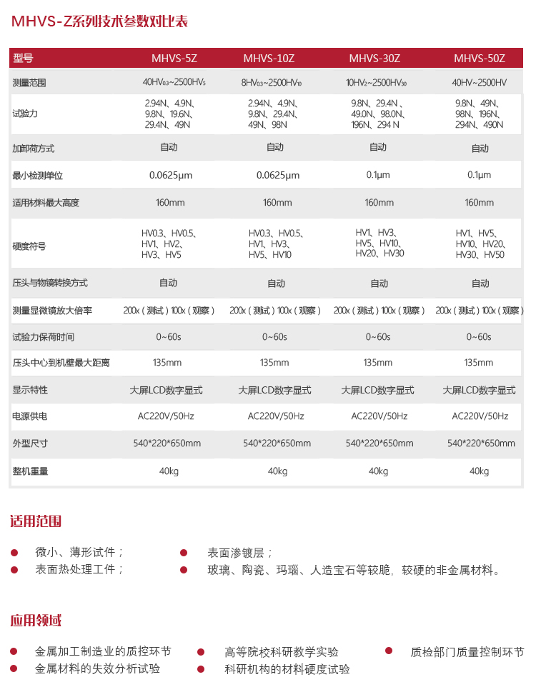 | 試驗力 | 詳見MHVS-Z系列技術參數對比表 |