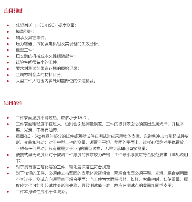 l 便攜式里氏硬度計(jì)對(duì)于被測(cè)工件厚度的要求較為嚴(yán)格,工件最小厚度應(yīng)符合規(guī)范要求(詳見說明書)。