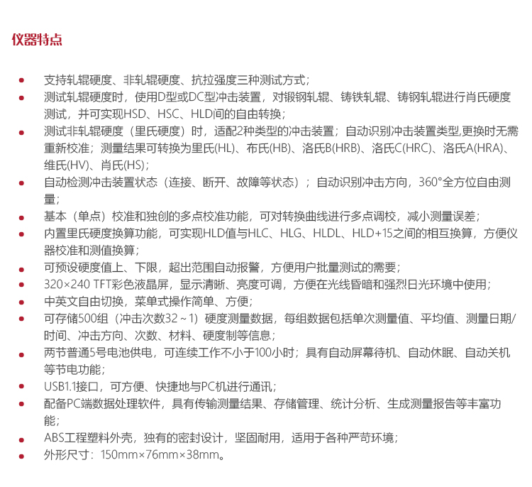 儀器特點(diǎn)l 支持軋輥硬度、非軋輥硬度、抗拉強(qiáng)度三種測(cè)試方式;