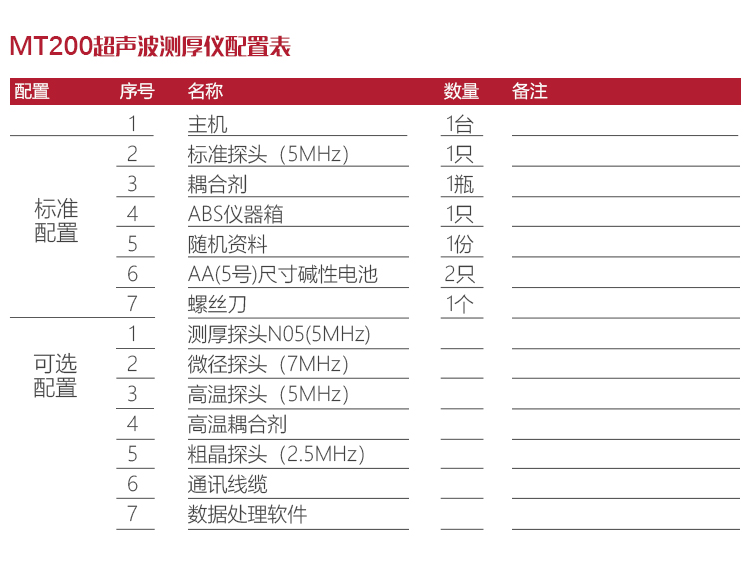 | 探頭直徑 | 測厚探頭NO5直徑10MM、微晶探頭N07直徑6MM、高溫探頭HT5直徑12MM、粗晶探頭N02直徑12MM |
