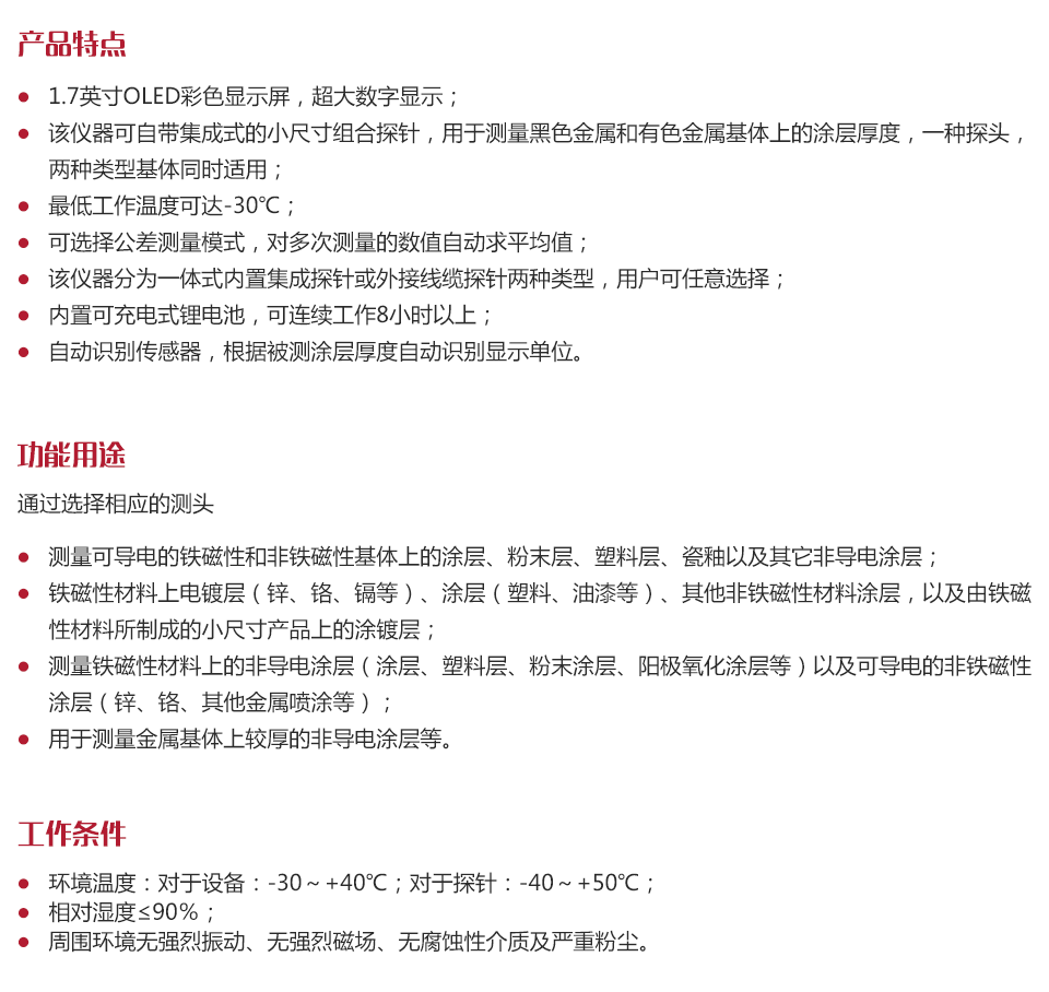 ?測量可導電的鐵磁性和非鐵磁性基體上的涂層、粉末層、塑料層、瓷釉以及其它非導電涂層;