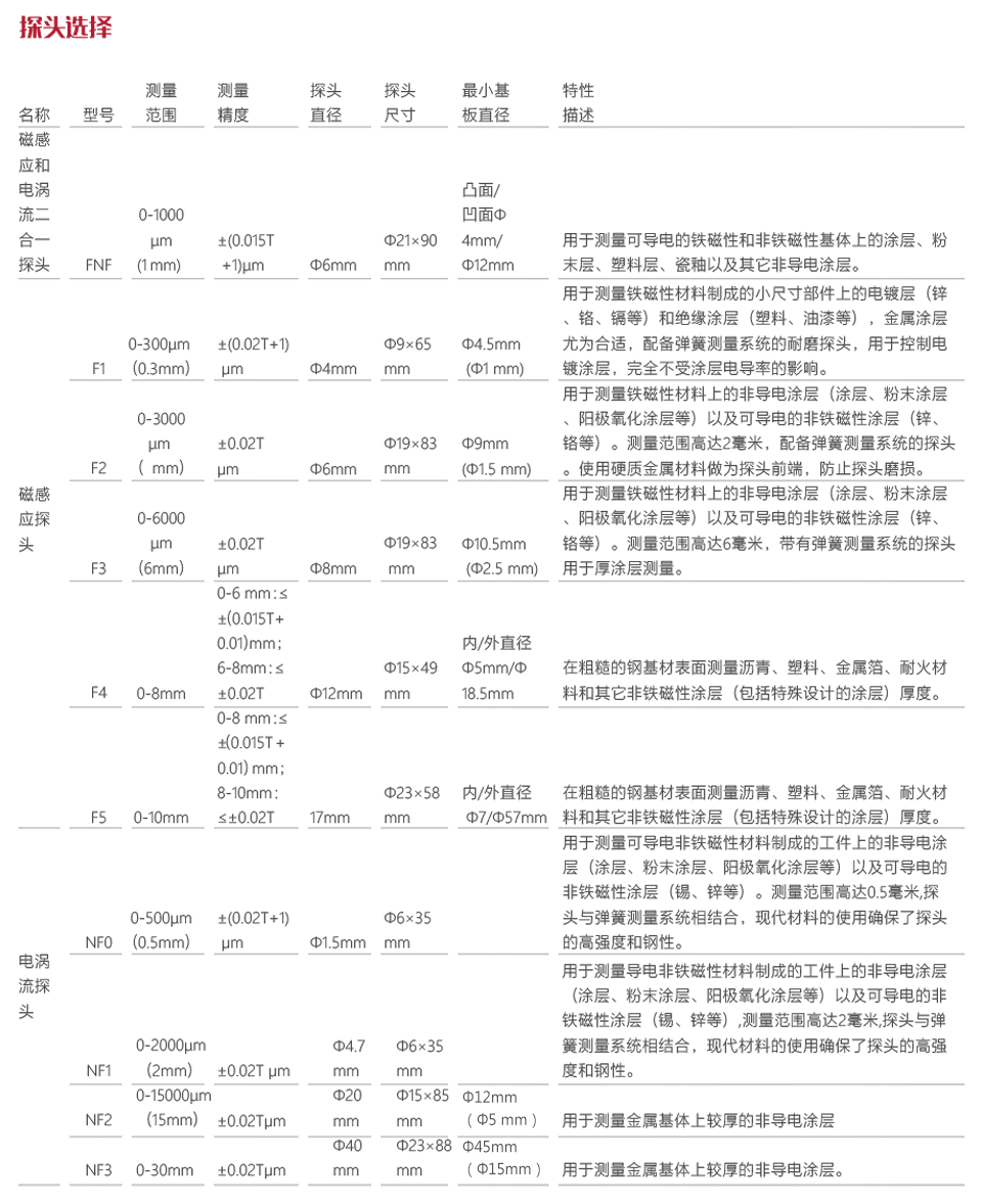 ?該儀器可自帶集成式的小尺寸組合探針,用于測量黑色金屬和有色金屬基體上的涂層厚度,一種探頭,兩種類型基體同時適用;