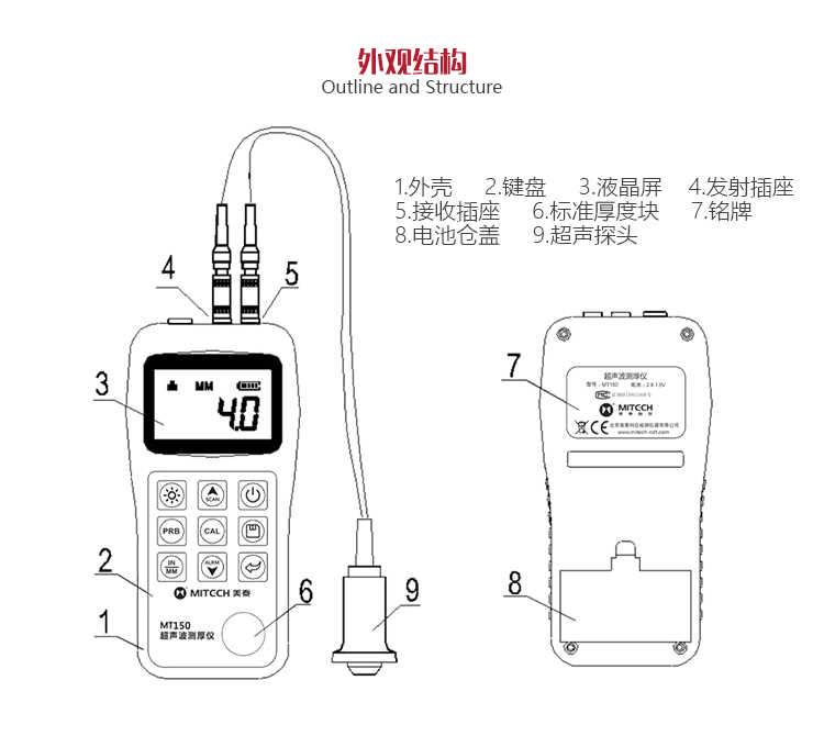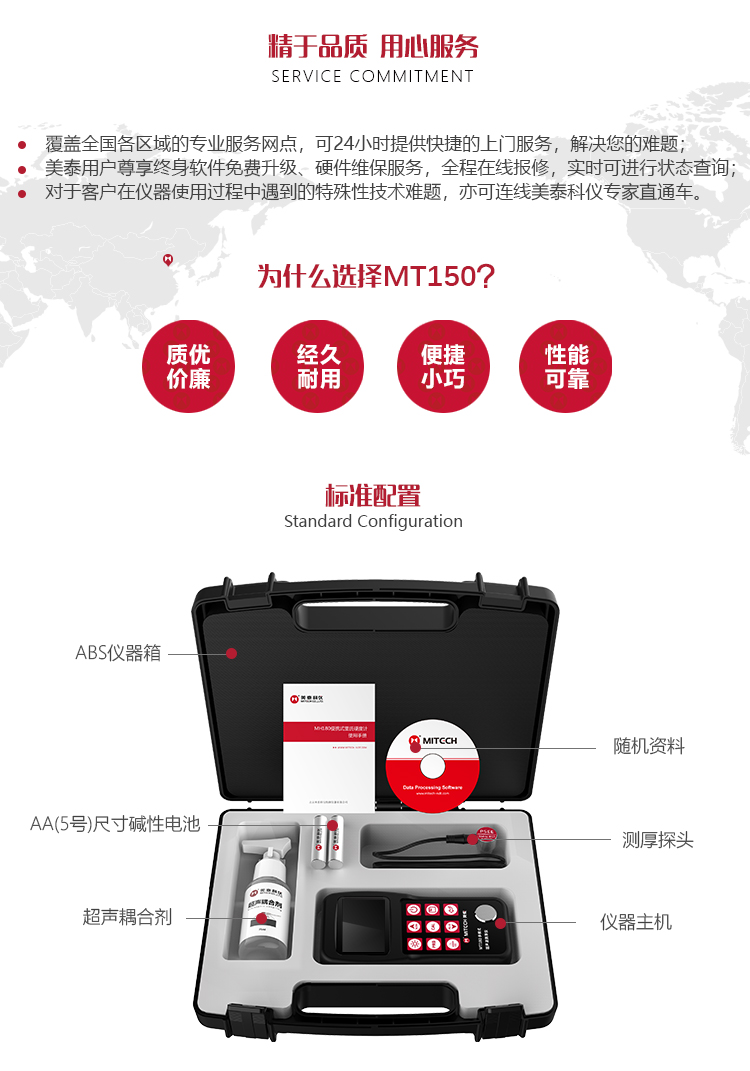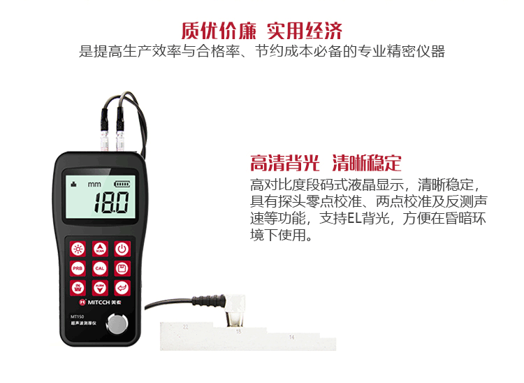 產(chǎn)品概述美泰MT150 超聲波測厚儀,基于超聲波測量原理,可對金屬、塑料、陶瓷、玻璃及其他多種超聲波的良導(dǎo)體材料進(jìn)行厚度測量,也可實現(xiàn)對材料聲速的反測。與傳統(tǒng)的測量方法相比,超聲波測厚儀的優(yōu)勢在于它只要接觸到被測工件的一面即可完成測量,其獨特的無損檢測性能為封閉類管材、容器等厚度檢測受局限的工況提供了完美的解決方案,被廣泛應(yīng)用于石油、化工、冶金、造船、航空、航天等領(lǐng)域的生產(chǎn)設(shè)備中各種管道及壓力容器腐蝕減薄程度的監(jiān)測,也可用于對各種板材及各種加工零件做精確的測量。